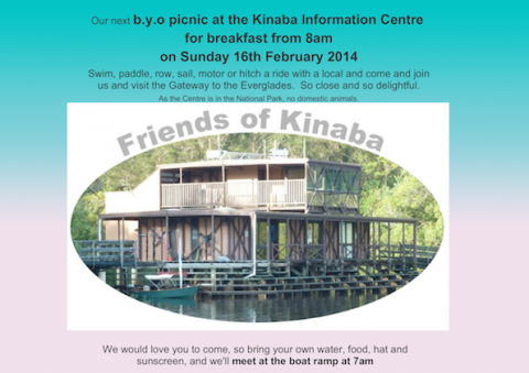 Our next b.y.o picnic at the Kinaba Information Centre for breakfast from 8am on Sunday 16th February 2014
